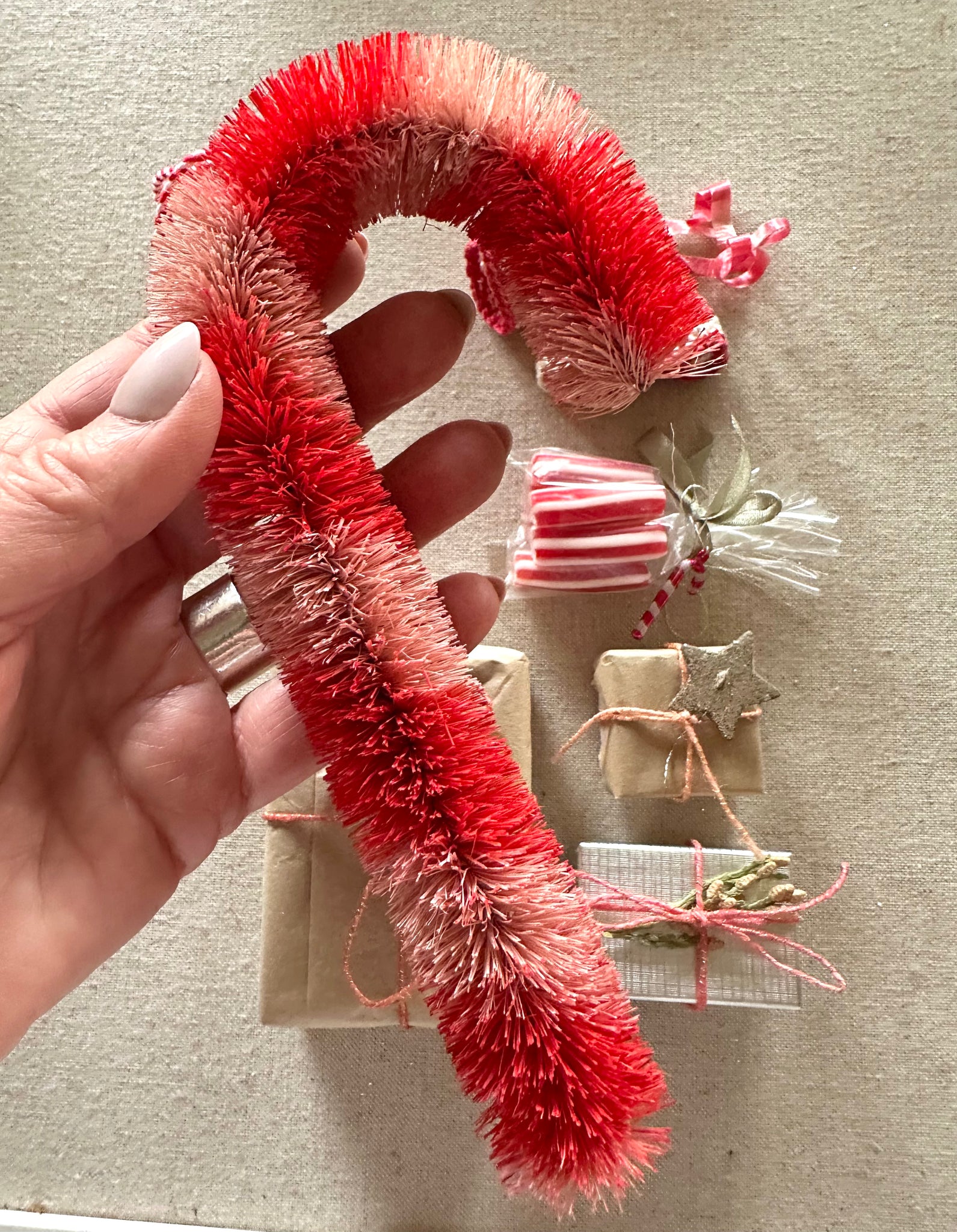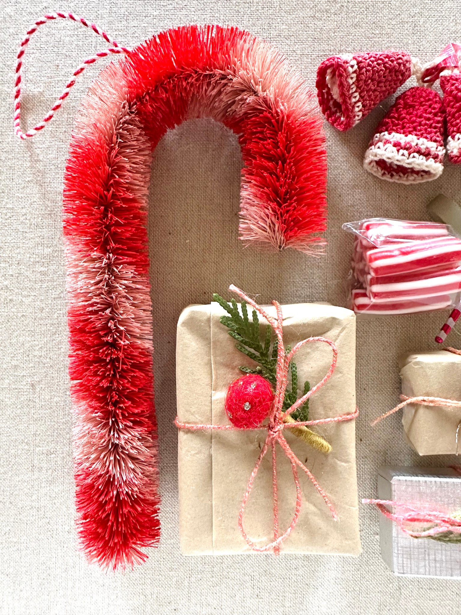 For the 2nd gift of Christmas ~ These Pink and Red striped bottle brush candy cane ornaments are so festive and sweet. They measure only 8 inches tall, such a fun size and easy to hang on a wreath or from your mantle. I love how they look tucked in with some fresh greenery. Merry, merry wishes