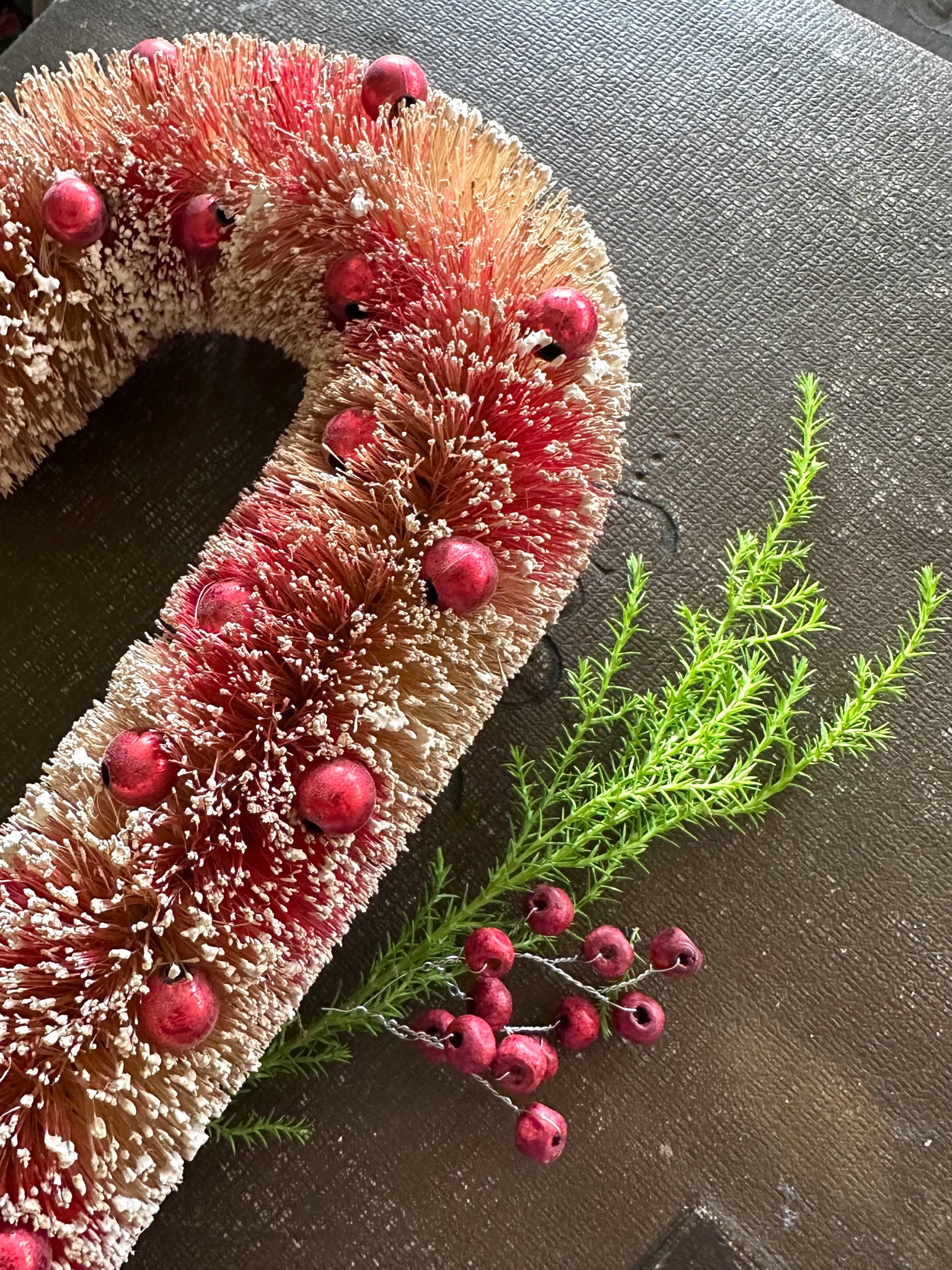 These darling, bottlebrush candy canes are so fun to decorate with and tie on packages. Red striped and festive these candy canes measure 10 inches tall and 5 inches wide. They look wonderful, tied with ribbon and a bit of fresh greenery.