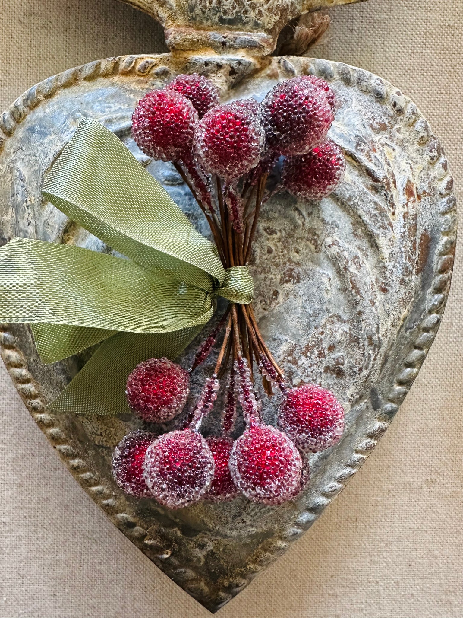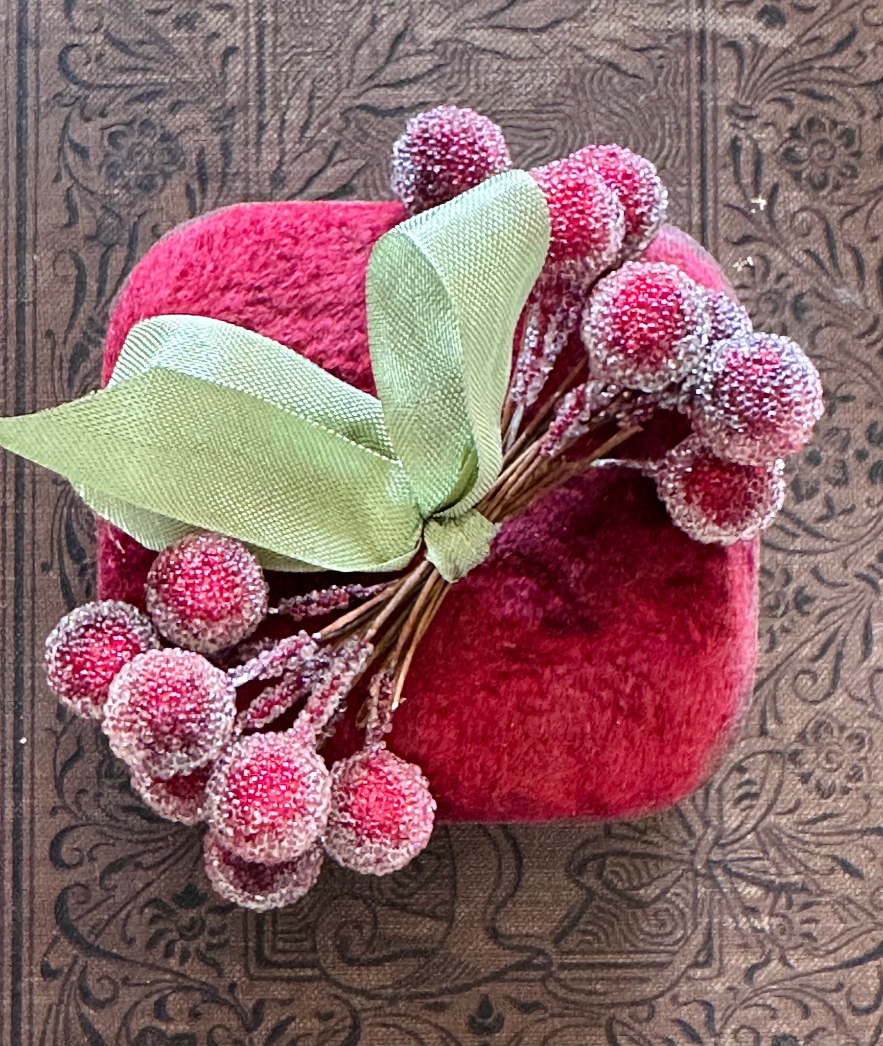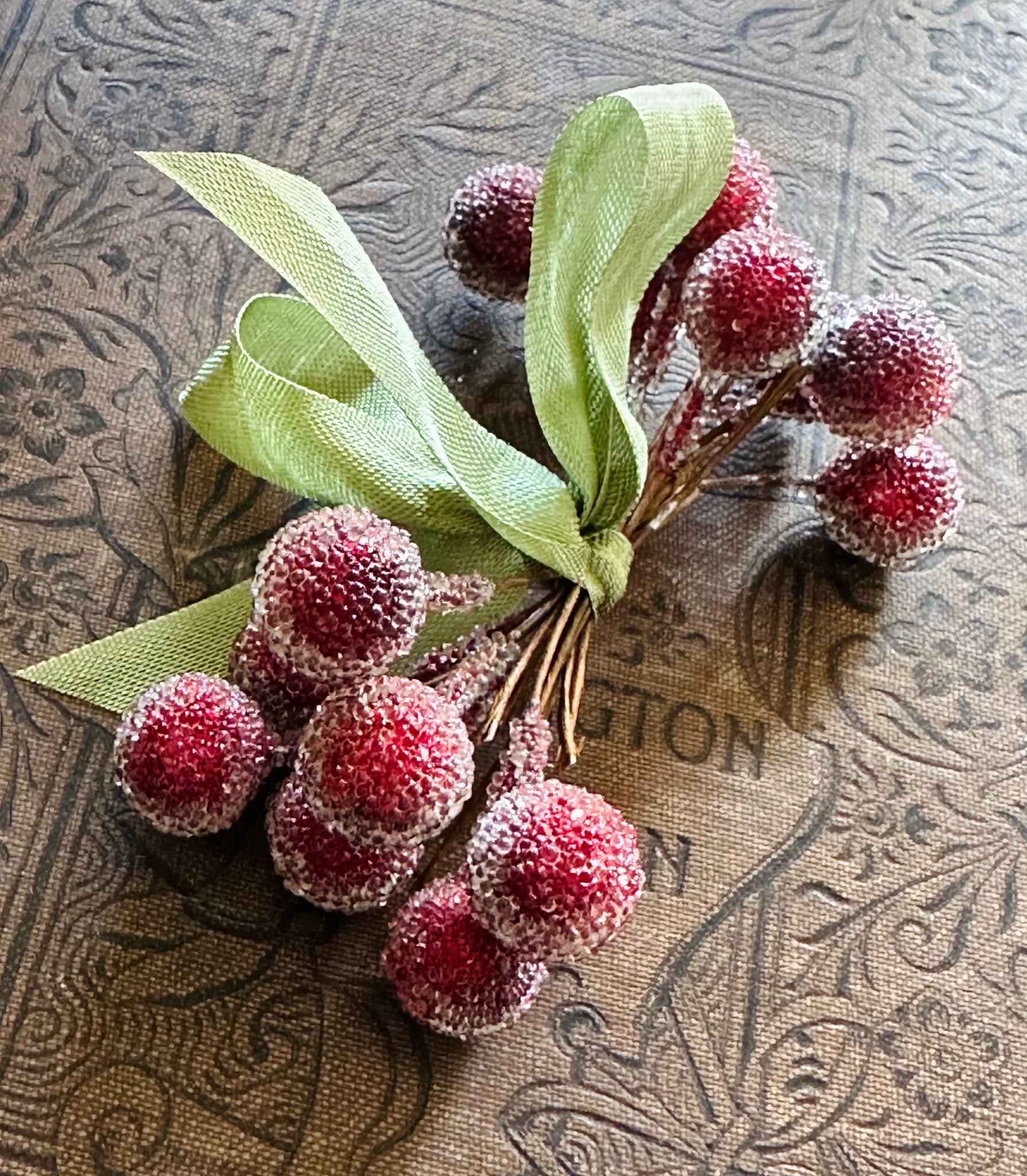 a sweet bundle of frosted cranberry stamens, so pretty in holiday crown and hairpieces.