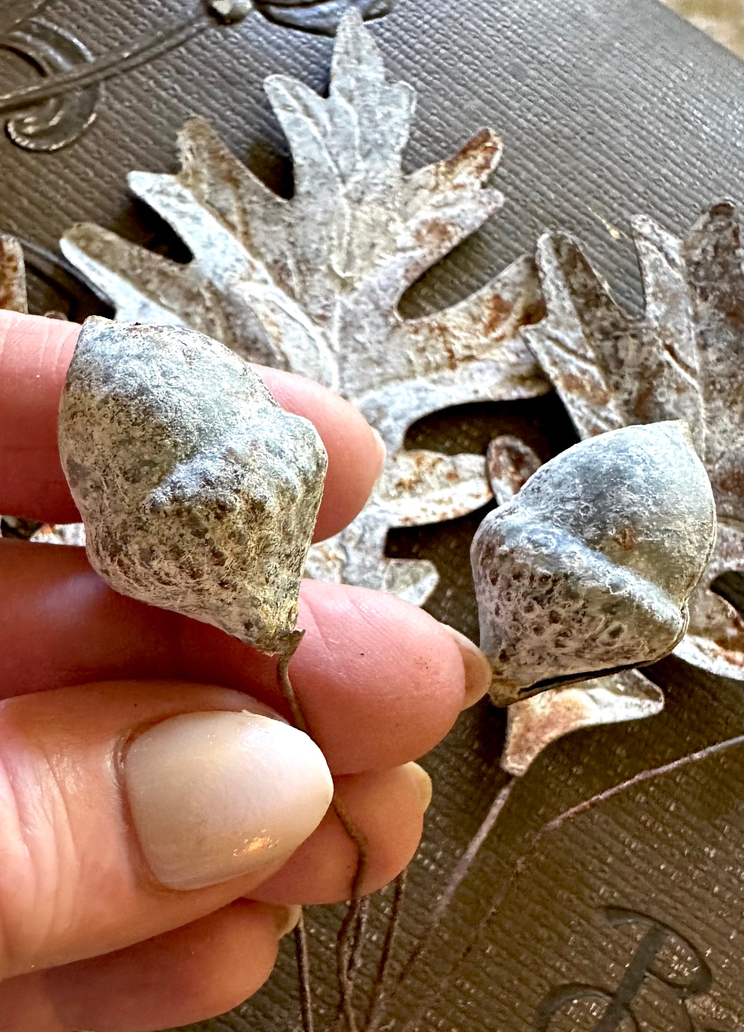 These amazing metal leaves and acorns are perfectly rusted and ready for your crafting.